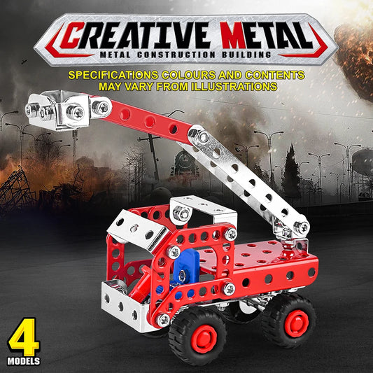 Metal Assembly Building Block Fire Truck Model Crane Excavator Bulldozer Engineering Vehicle Set DIY Screw Nut Alloy Toy for Boy