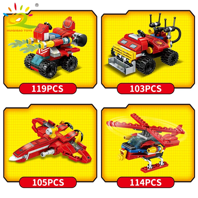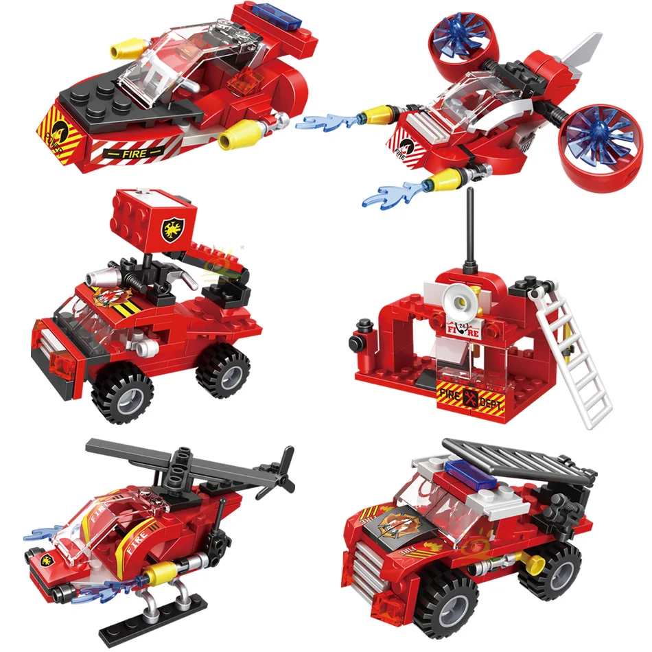 Cet ensemble donne vie au monde des héros des pompiers. Les enfants peuvent construire un énorme camion de pompiers avec des détails réalistes, ou créer une équipe de sauvetage incendie plus petite qui comprend des véhicules comme des voitures, un bateau et un hélicoptère. Avec deux styles d'assemblage, les enfants bénéficient du double plaisir et de plus de façons de jouer.