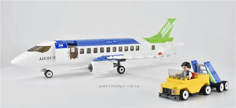 AIRBUS Air Space Street View Civil Aviation City Passenger Plane Cargo Airport Construction Building Blocks Educational Kids Toy