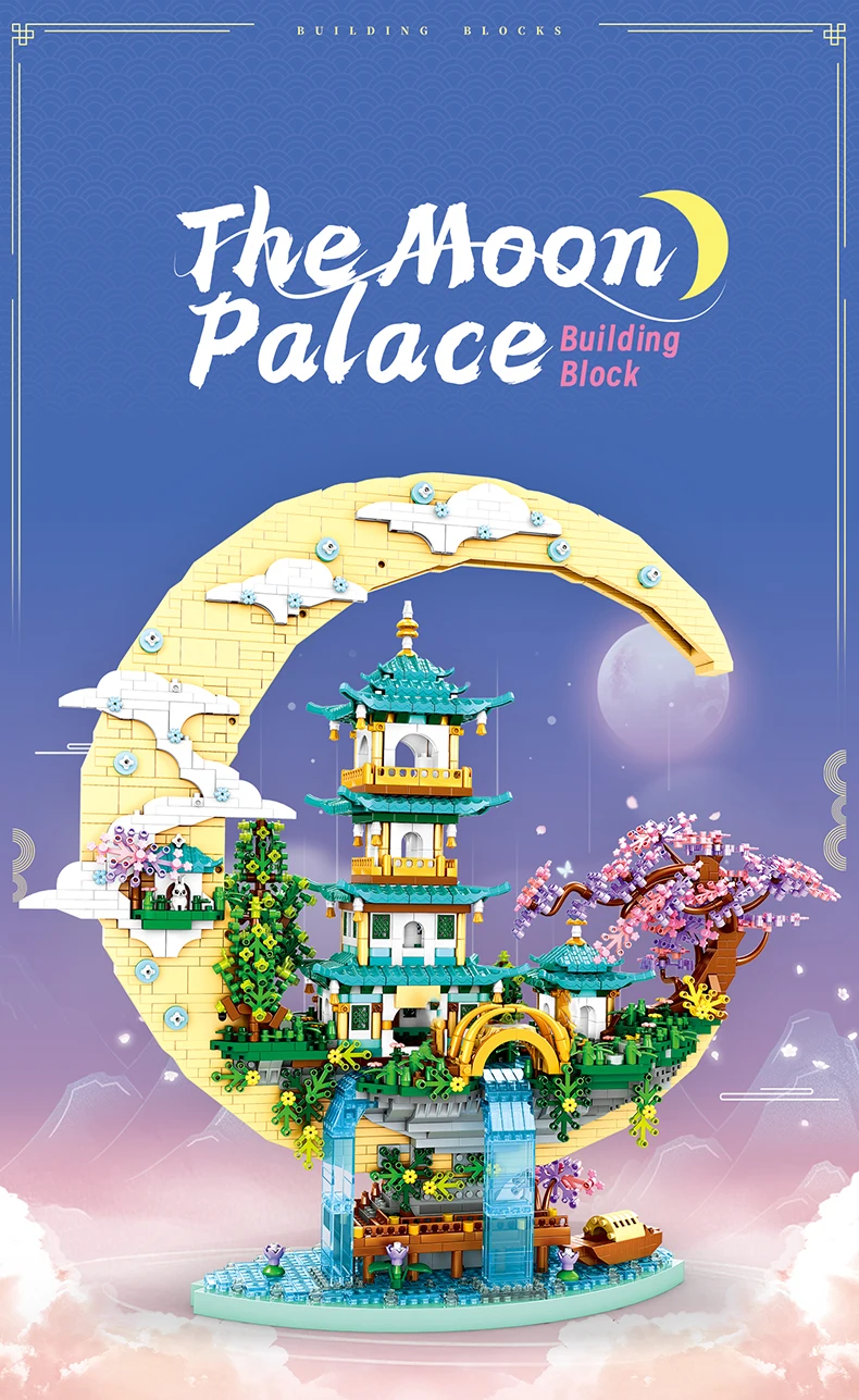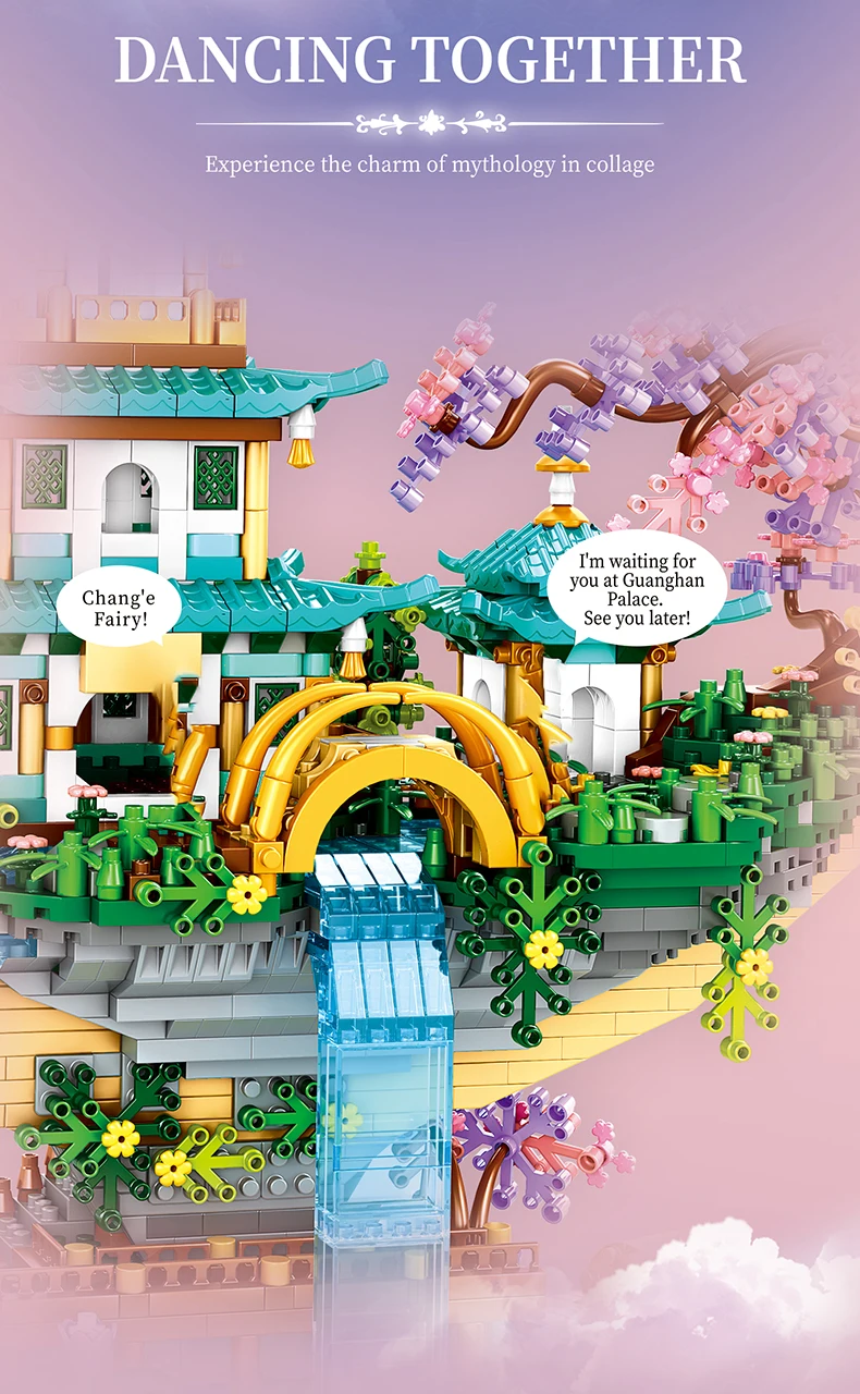 This set captures the beauty of ancient Chinese gardens, complete with a temple tower, pavilion, and serene lakeside layout. With micro diamond blocks, the build allows for intricate details and a refined finish. The included LED lights enhance the model, turning it into a glowing centerpiece at night.