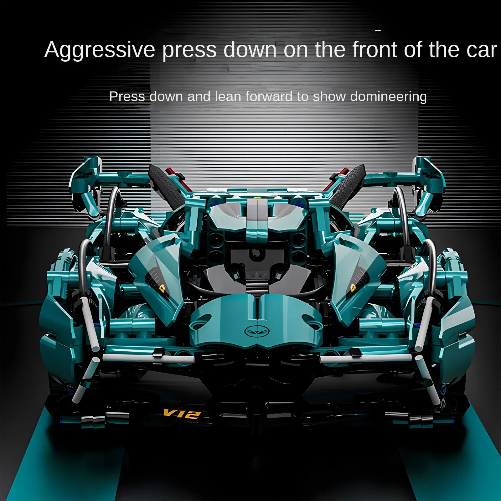 Blue V12 Block Roadster RC Tech Racing 1:14DIY Roadster building block assembly Block car toy birthday gift