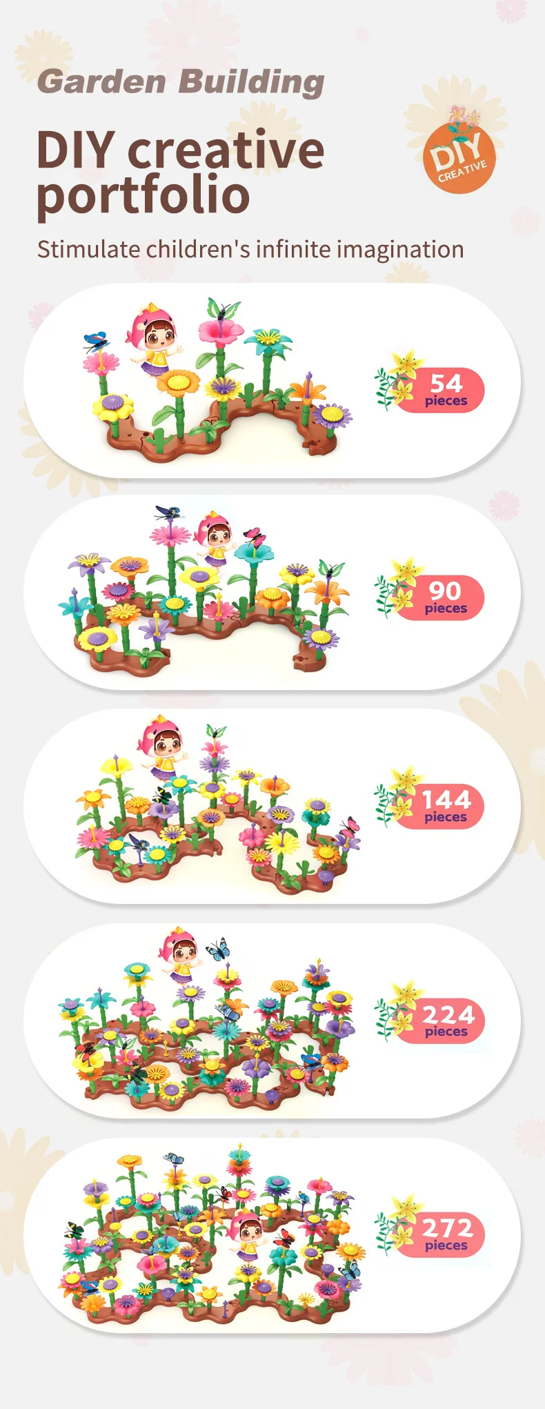 This set includes a variety of flowers and garden-inspired elements, making it easy to assemble a bouquet or create your own arrangements. Each piece is designed with attention to detail, giving your garden a realistic and vibrant look once complete.