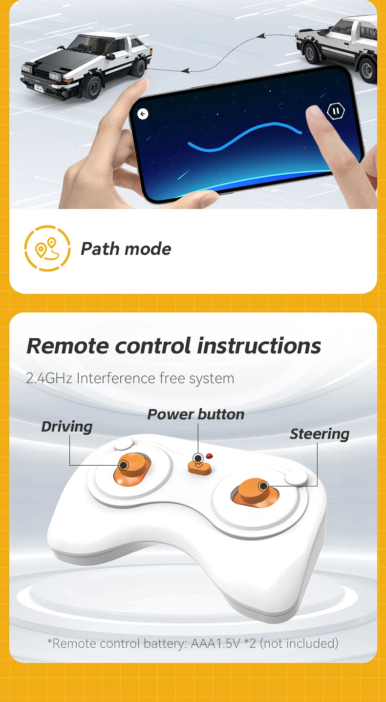 Once assembled, this RC building blocks car transforms into a fully functional drift racing car. Controlled via remote, it delivers smooth handling, exciting drifts, and the thrill of racing—bringing your creation to life in motion.