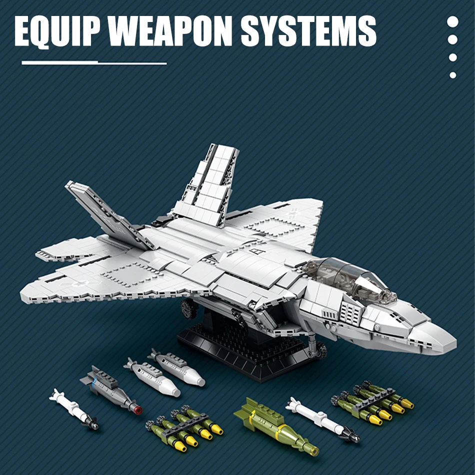 MOC Military Series Jump Jets F14 F16 F18 F22 F35 Aircraft Building Blocks War Fighter Model Bricks Toys For Childrens Boy Gifts