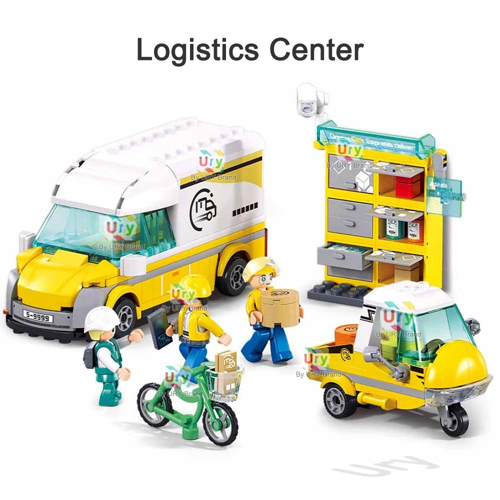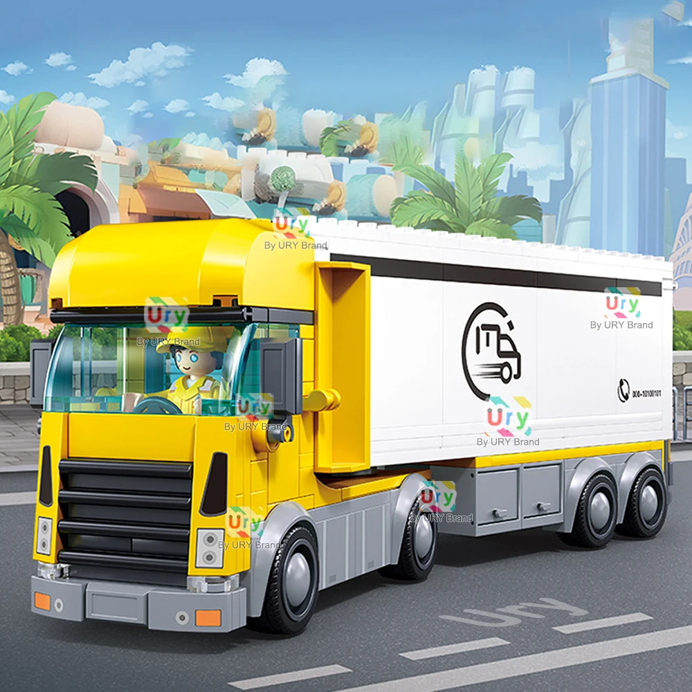 City Traffic Car Yellow Logistics Container Van Truck Express Station Set Figures Model Building Blocks DIY Toys for Boys Gifts