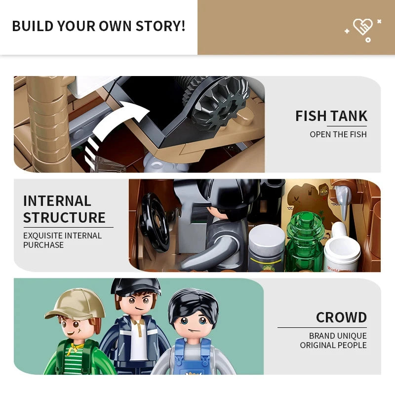 Fishing Boat Trawler Great White Shark Boat Building Blocks Pirate Ship Model Bricks Set With Mini Figures Kids DIY Toys Gifts