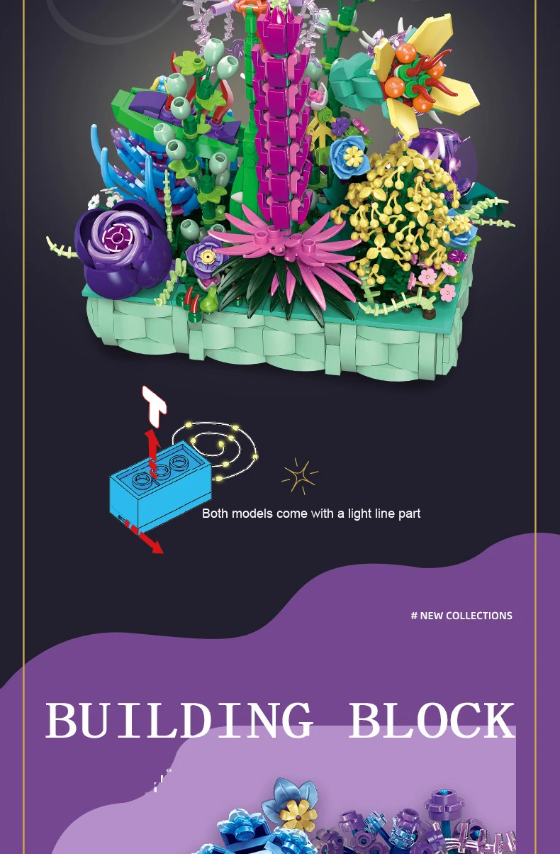 Idea Botanical Garden Pandora Flower Potted Plant Bouquet with Light Building Block Set Toys for Girl's gifts or Home Deco