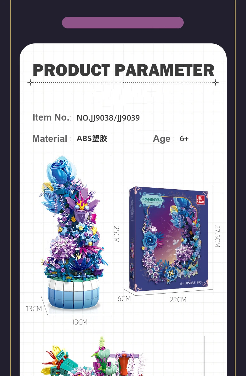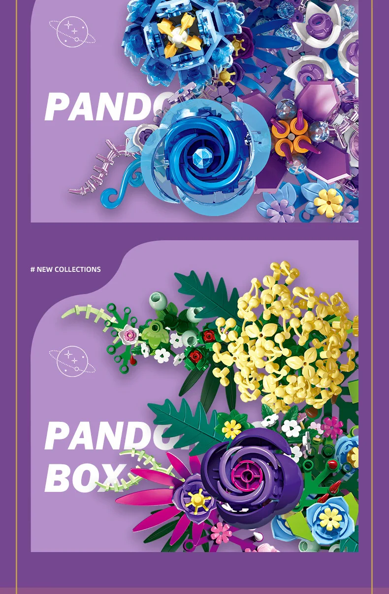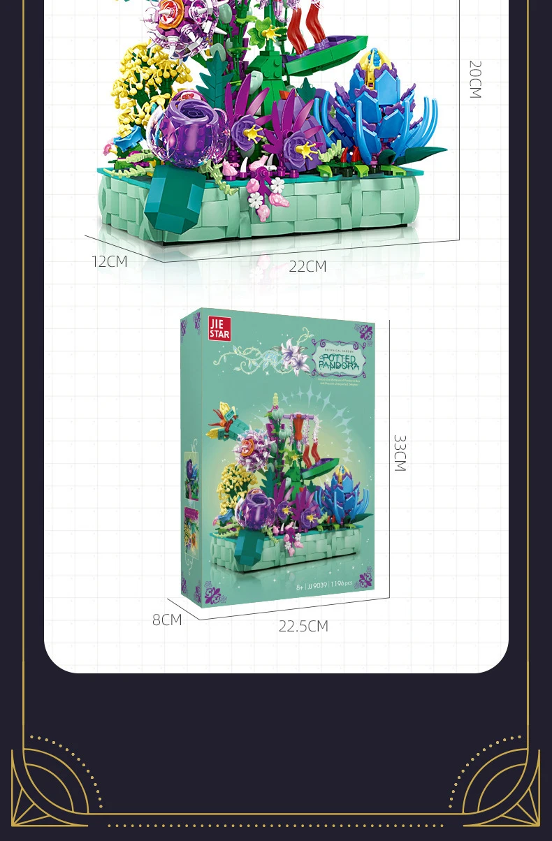 This model features a stunning Pandora-style flower bouquet in a decorative pot, complete with intricate petals and leaves. The lifelike design makes it a standout display piece, whether placed on a desk, shelf, or as a centerpiece in your living space.