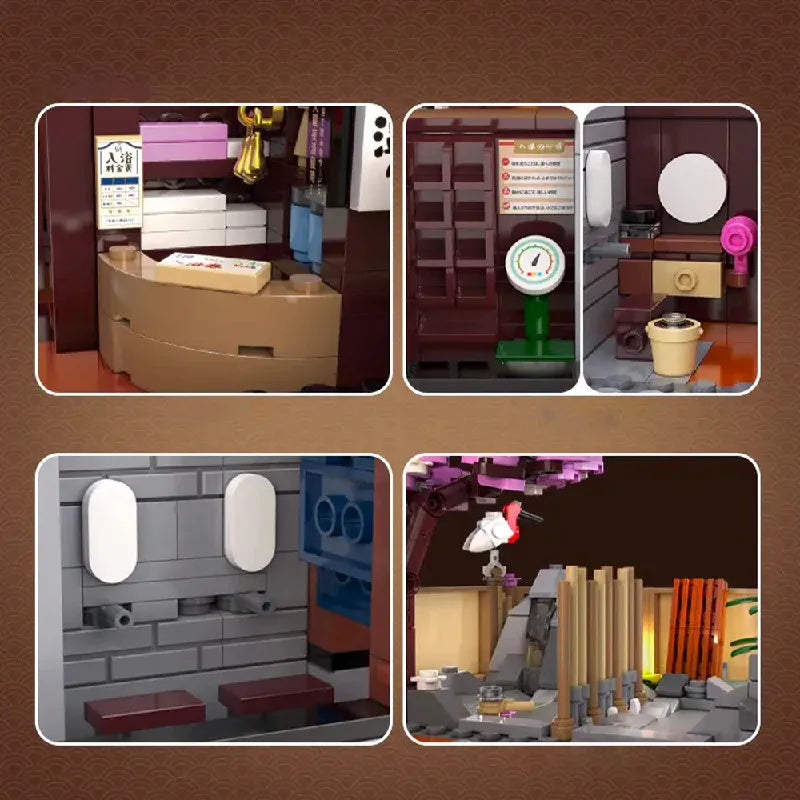Traditional Japanese Yuzawa Bathhouse Building Blocks Set – 1249PCS Modular Architecture
